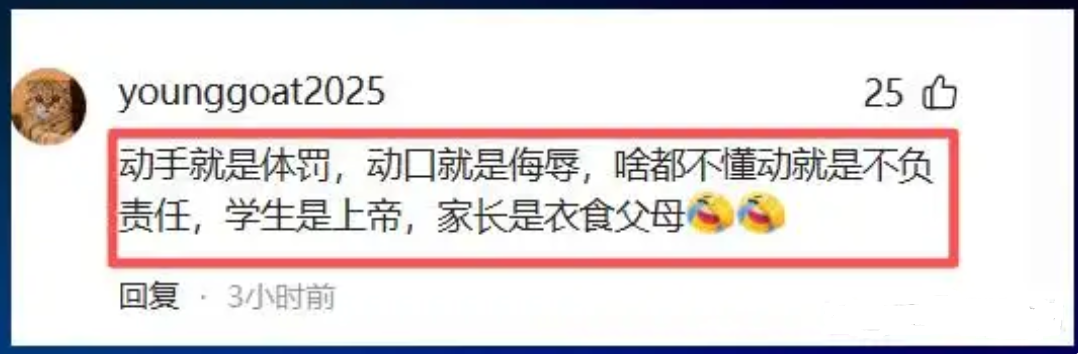 但另一方的声音,虽然微弱,却直指核心。一位老师网友的评论带着某种清醒的痛感:“动手就是体罚,动口就是侮辱,啥都不懂动就是不负责任,学生是上帝,家长是衣食父母。”这句话像一面镜子,照出了当下教师面临的伦理困境:教育惩戒的尺子,究竟该画在哪里?