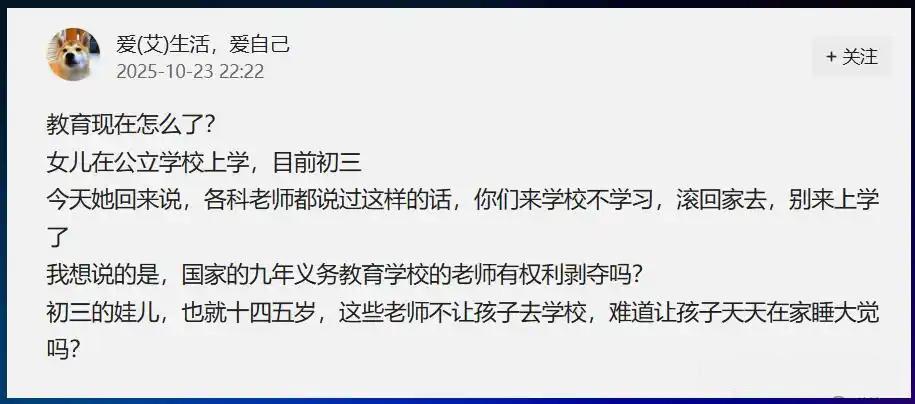 就是这样一篇不足百字的短文,却意外地引爆了网络。因为它撕开的,远不止是一句教师的气话,而是整个社会关于教育底线、权力边界和育人本质的一场集体心病。