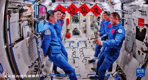 大约100分钟之后,3名新太空人“漂”入中国空间站,神舟二十一号乘组与神舟二十号乘组会合,胜利实现中国航天史上第7次“太空会师”。