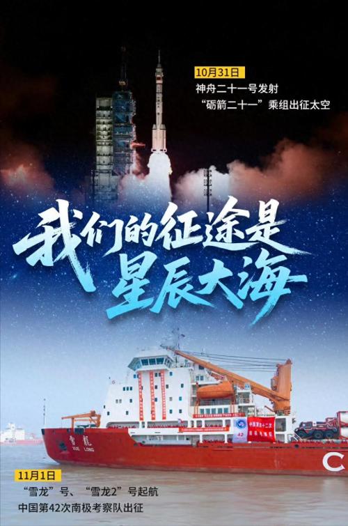 其次也是在11月1日,中国第42次南极考察队从上海出征,由“雪龙”号和“雪龙2”号两船共同组成。