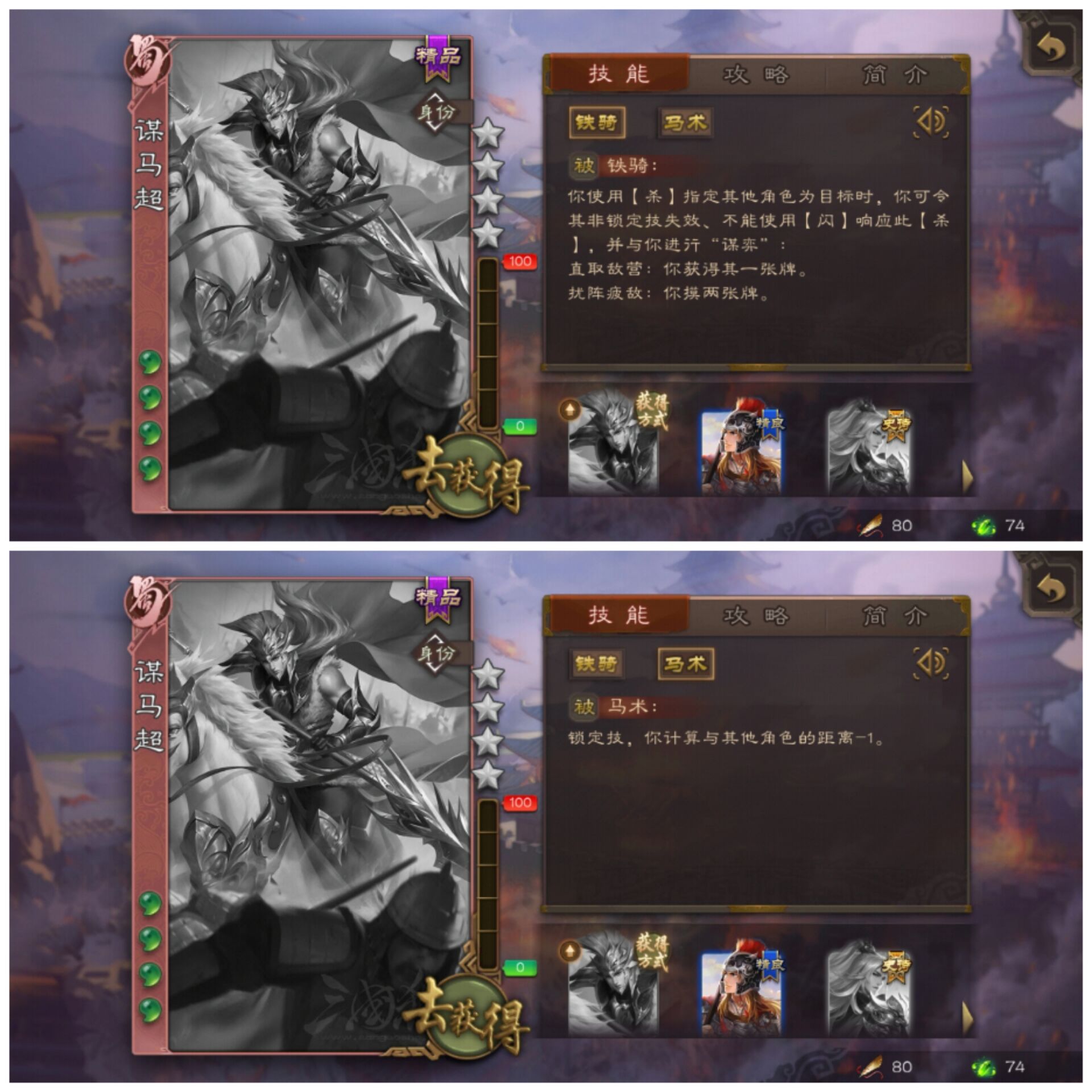 谋马超也是在界马超的基础上有些加强,第一是直接就不用判定就不能响应杀了,第二是还能偷一张牌或者摸两张牌,也有了一定的过牌量了,不怎么怕断杀了。
