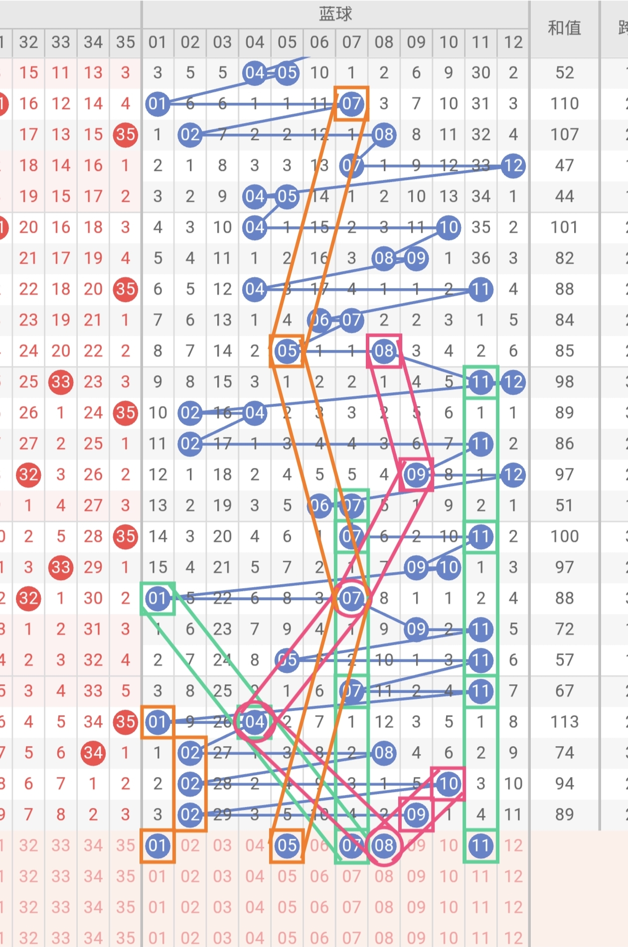 三区推荐25、26、27、28、29、31、34、35等八枚号码,其中可重点关注25、26、29、31、35等五枚号码。