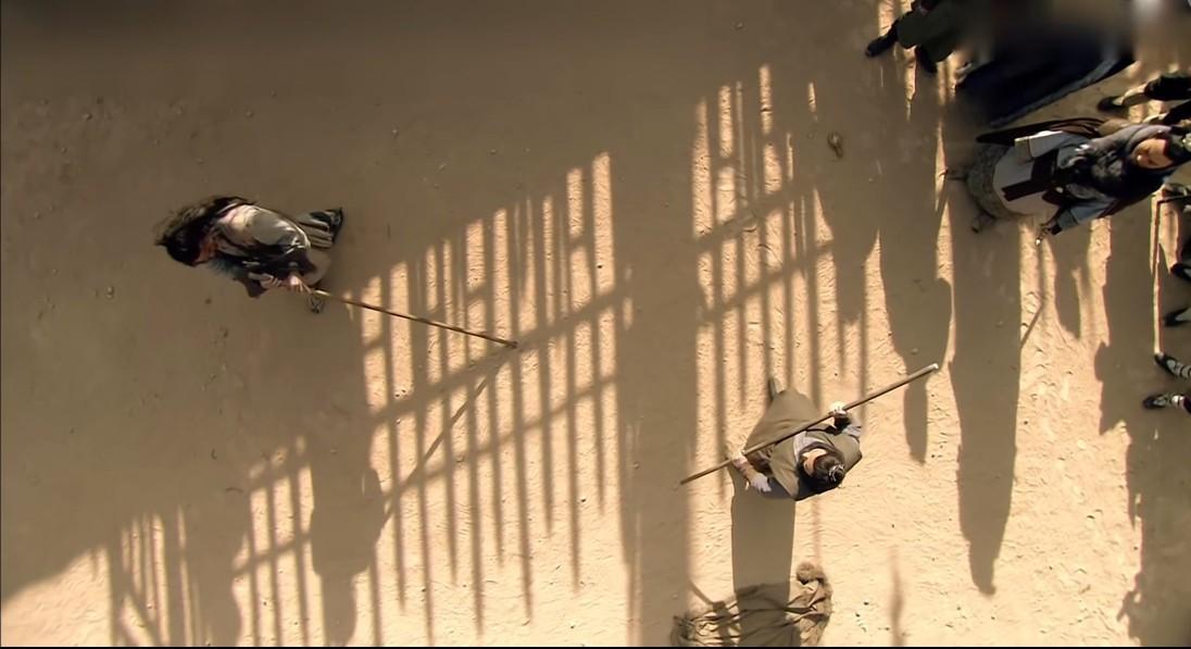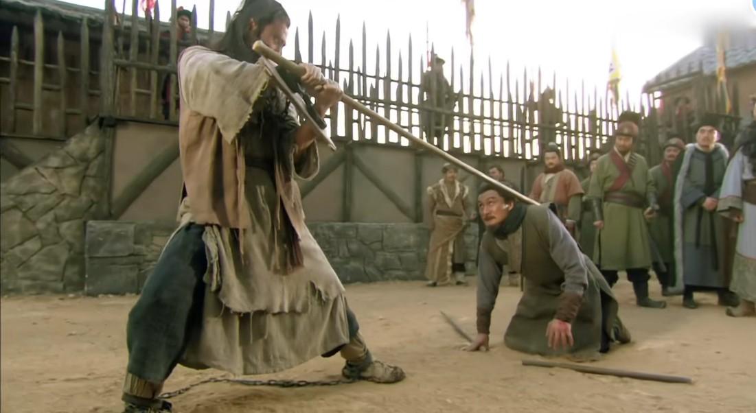 林冲放下心来,抄棒在手,来到院子当中。洪教头早已脱掉宽大的外衣,收拾得紧沉利落,抬胳膊抬腿没有半点绷挂之处。二人互亮门户,道了个请字,就斗在了一处。洪教头将那条棒使得虎虎生风,将林冲逼得滴溜溜直转,不禁心中暗喜:就这模样还八十万禁军教头啊?于是,一招快似一招,恨不能马上将林冲打倒在地。忽然,林冲提棒跳出圈外拱手认输。柴进一问才大悟道,戴着枷铐动手着实不便,故取出纹银十两叫董超薛霸开了枷锁。随后又取一锭二十五两的大银掷于地上当作彩头,只望林冲赢了。