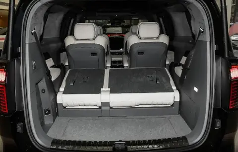 在内部储物空间方面,车辆表现也非常出色。前排中控中央扶手箱内设置了一个8.6L的车载冰箱系统,支持加热、冷藏、冷冻等多种模式,并可实现离车24小时恒温,进一步提升了车辆的便利性。第二排还配备了独立的储物空间。小桌板能够满足不同乘坐者临时办公、用餐或观看视频的需求,有效提升了整个座舱的豪华程度。车辆的后备箱容积表现也十分出色,标准状态下拥有574L的容量,可以直接放下6个24英寸的行李箱。日常出行时,基本不用担心储物问题。如果需要搬运大量大件物品,也可以将第三排座椅收起,此时后备箱容积可扩展至2963L,足以容纳更多物品,满足不同消费者的实际使用需求。