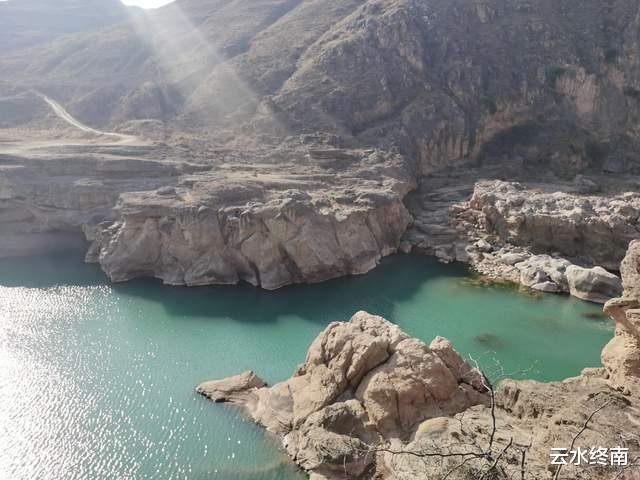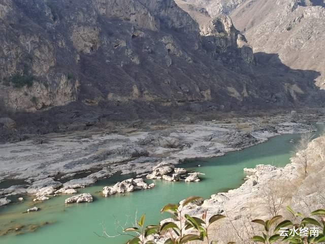 过了这一段石洞,这一路左边是碧蓝的的泾河水,右边是深绿的泾干渠,我觉得很奇怪:为什么泾河水在这一段是碧蓝的,出了山地到了平原,泾河水的颜色就发生了变化。