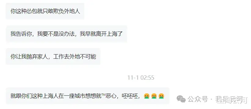 他讨厌上海吗?还是讨厌自己的处境?从他的帖子里话来看,他显然是不喜欢上海的,他是巴不得离开上海的,有点想尽快逃离的感觉,但是又逃不了,至于原因,他也说了,是“我告诉你,我要不是没办法”,看来,他是真的没有办法了。