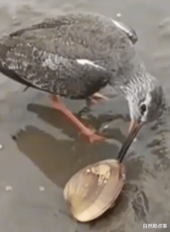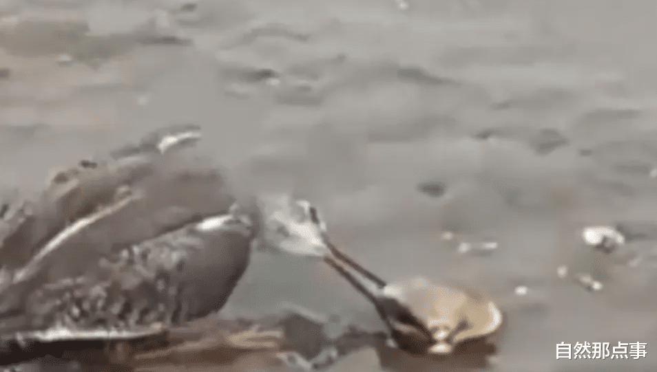 只见它一边扑腾一边拍打,不停地把蚌摔向泥滩。然而,蚌纹丝不动,泥滩上的淤泥又软又黏,根本没什么作用,鹬的努力显得徒劳无功。