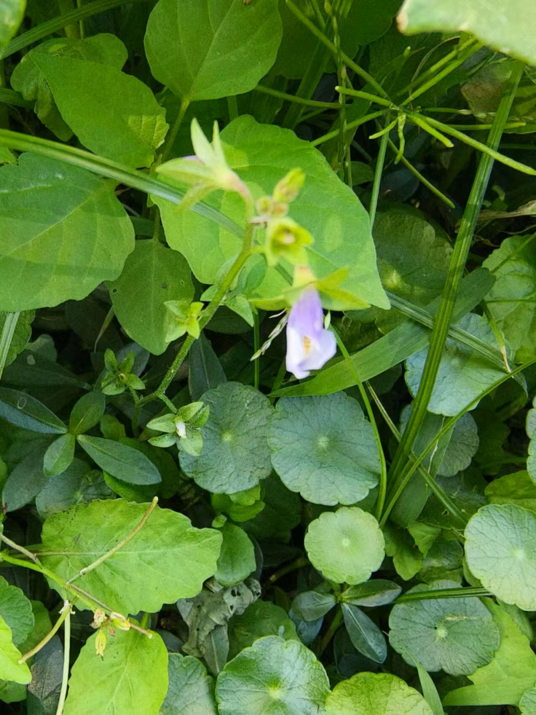 今天清理的时候,越看越觉得铜钱草真的长得很可爱,长长的草茎上是风吹过便摇晃着的圆圆的绿油油的叶片,叶脉清晰,根系发达,一长便是一丛。六到八月的时候会开花,花是一个花球,小小的,毫不起眼,不趴着看都看不着。既可以扦插,也可播种,还可以随着根分枝,成活率很高,生长快速。院里的就是田里挖回来的一株长成的一片。据说它是入侵物种,现下四野都有。考虑了一下,打算就只在花盆里种,院里的要一起清理。院角就留给通泉草、蓼花……蓼花真的很多年没见过了,刚开始发现还不知道是什么,查了一下才知道,原来是年少时常常在水边能看到的,茎秆像是老人用的拐棍。果然什么人养什么植物,这院子里全是些容易成活的植物。