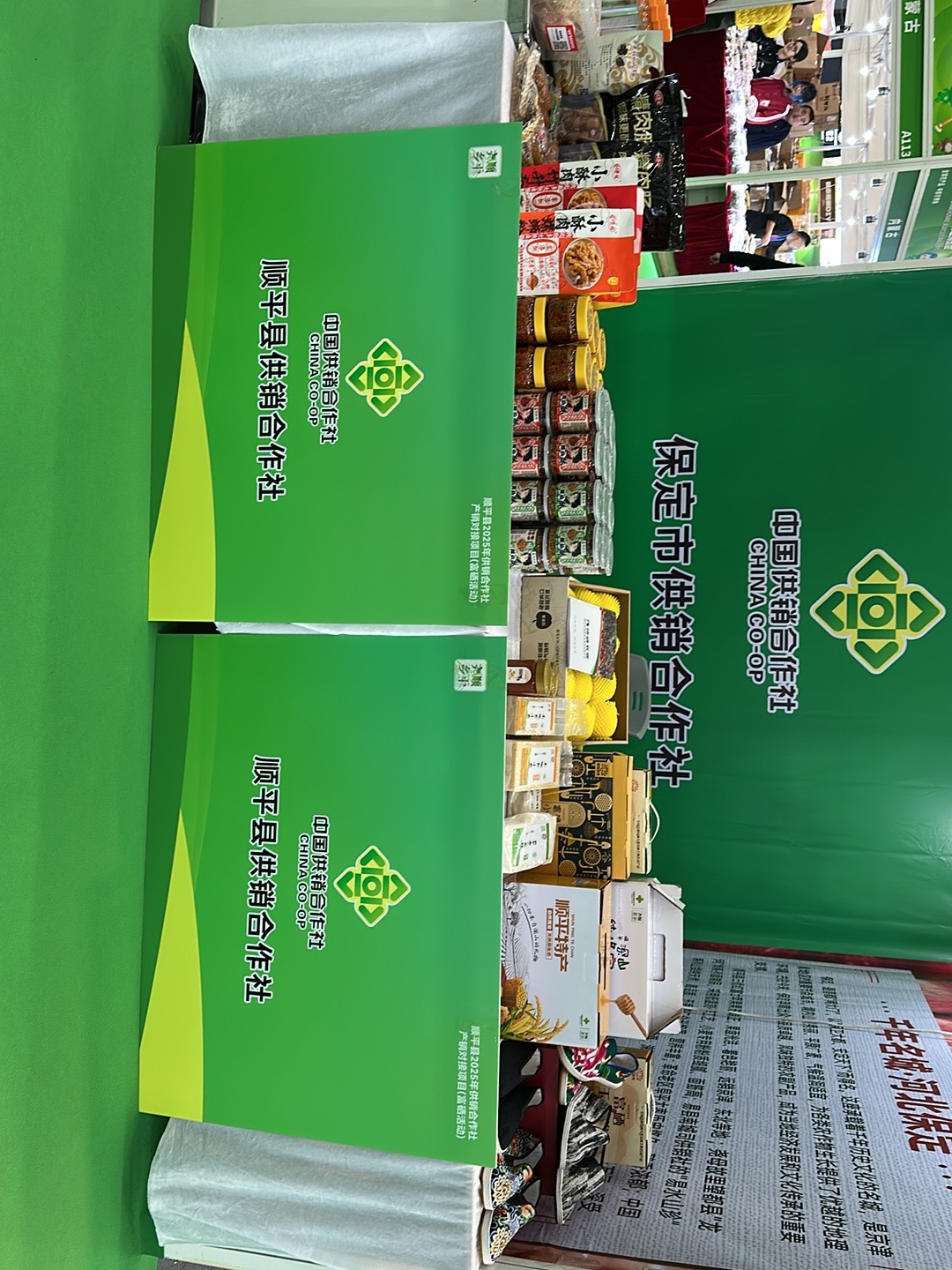 社积极搭建产销对接桥梁,积极响应保定市供销合作社安排,组织顺平县万源家庭农场、顺平县优鲜农牧有限公司、顺平县金步轩鞋业有限公司手工布鞋、保定农伯伯农副产品有限公司、保定馋物食品有限公司、保定德福食品有限公司、顺平县博融农业发展有限公司7家顺平县特色产品企业参会。
