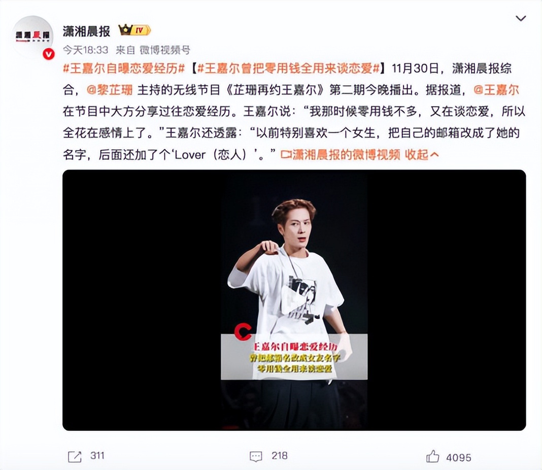王嘉尔曾被朋友骗走三分之一收入,坦言还是会借钱——极目新闻