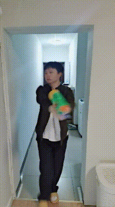 4重庆的妹子最胆大,马桶刷居然当众变成了枪,还离鼻子那么近。估计为了本身色演出买的新的吧,