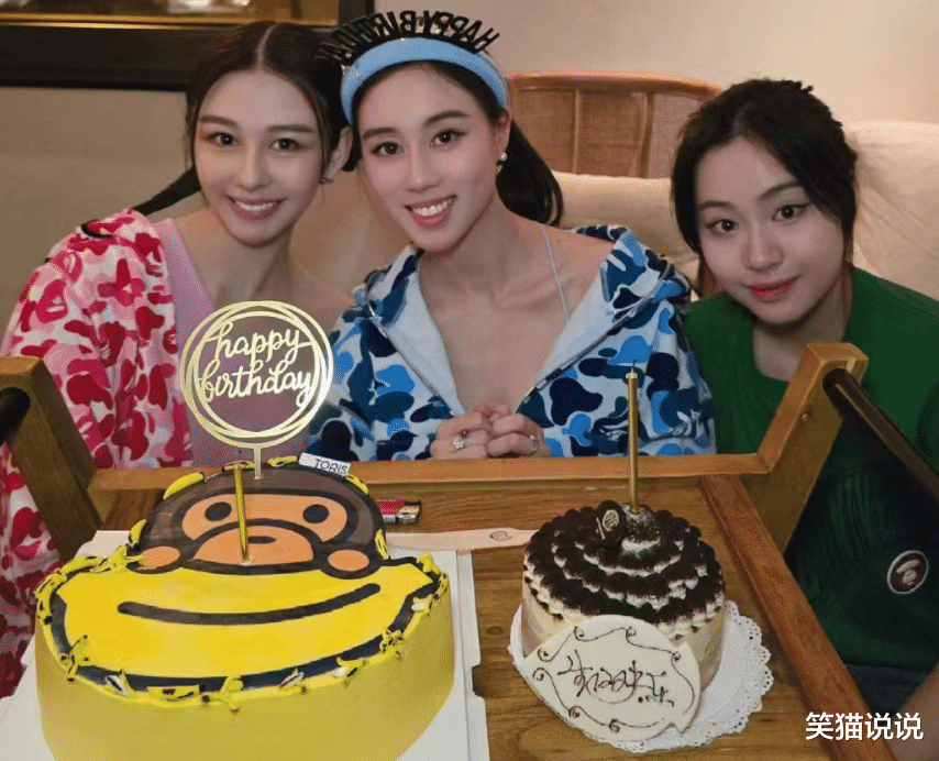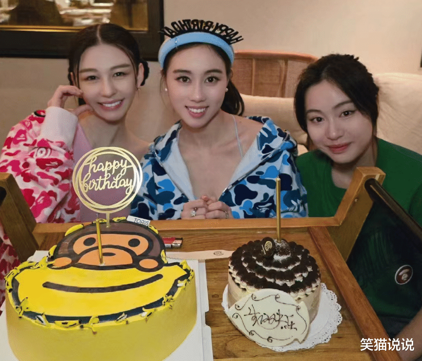 摆放在他们桌前的两个十分可爱的蛋糕,何超欣跟沈月一起互动的画面十分友好,看得出两人的关系真的很好。