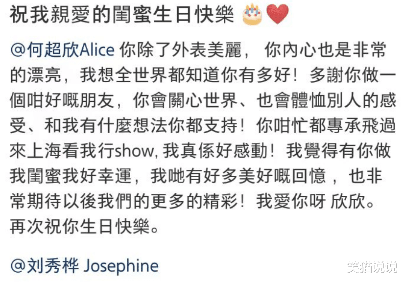 6月11日,邱淑贞的大女儿沈月在自己的个人社交账号上晒出了合照,并配文道:“祝我亲爱的闺蜜生日快乐。”在文中,沈月还艾特了何超欣说道:“你除了外表美丽,你内心也是非常的漂亮,我想全世界都知道你有多好!”在文中后面还艾特了刘秀桦的账号。在照片中可以看到沈月跟何超欣坐在一起,两人一起比心拍照,看起来十分亲密。