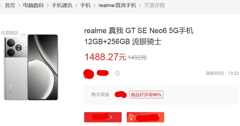 第三款是真我GT SE Neo6,这个系列专门追着红米Turbo打的,去年的GT Neo5 SE对标红米Note12 Turbo,今年的GT SE Neo6对标红米Turbo3。它采用第三代骁龙7+处理器,性能与第三代骁龙8S不相上下,12G+256G正常价格是1999元,如今最低只要1488.27元,降幅511元。