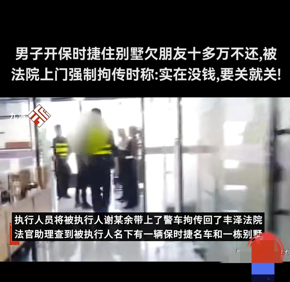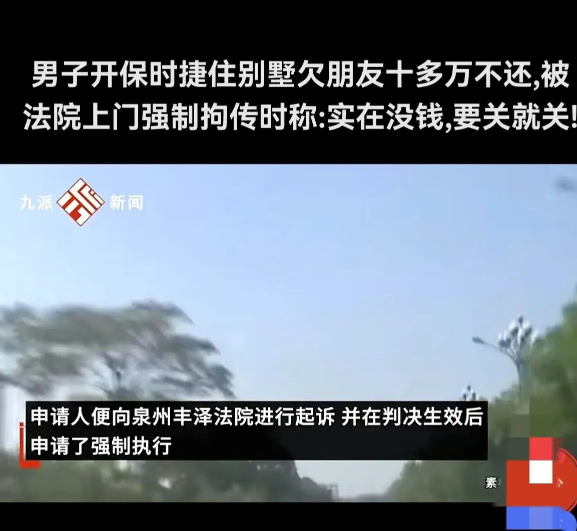 男子因债务纠纷拒还款,被法院强制拘传,称实在没钱要关就关