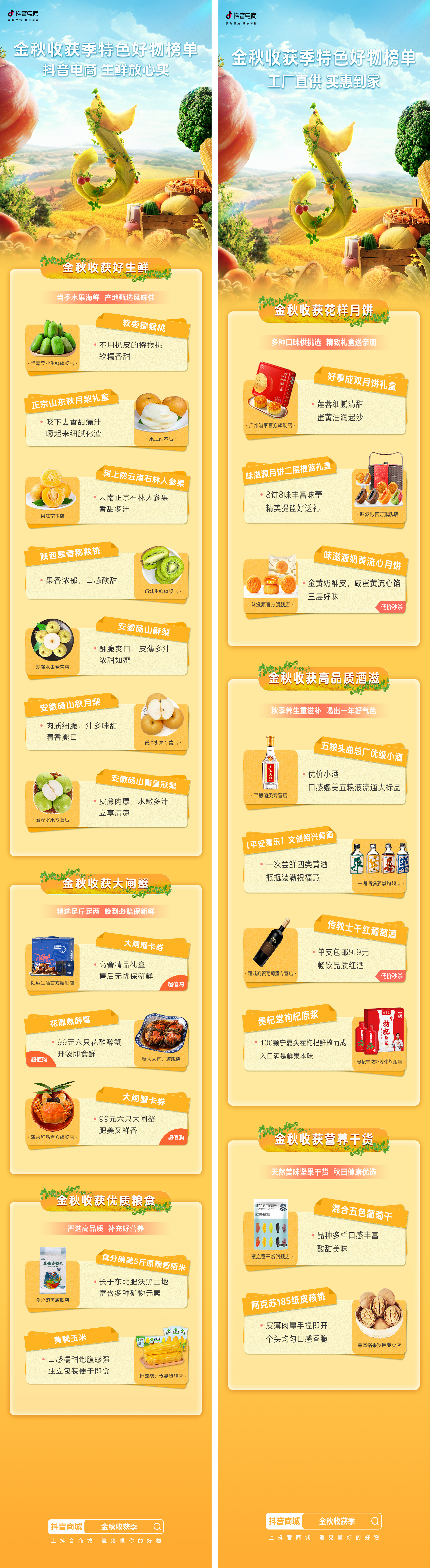 秋天步近一年的尾声,有沉甸甸的丰收,有轻飘飘的落叶,集圆满和自在于一体,还原出万物的本真时刻。在这样充盈的季节里,在抖音电商的「金秋收获季」中遇见优质中秋好物,“一站式”带走一份属于自己的,丰收的喜悦。