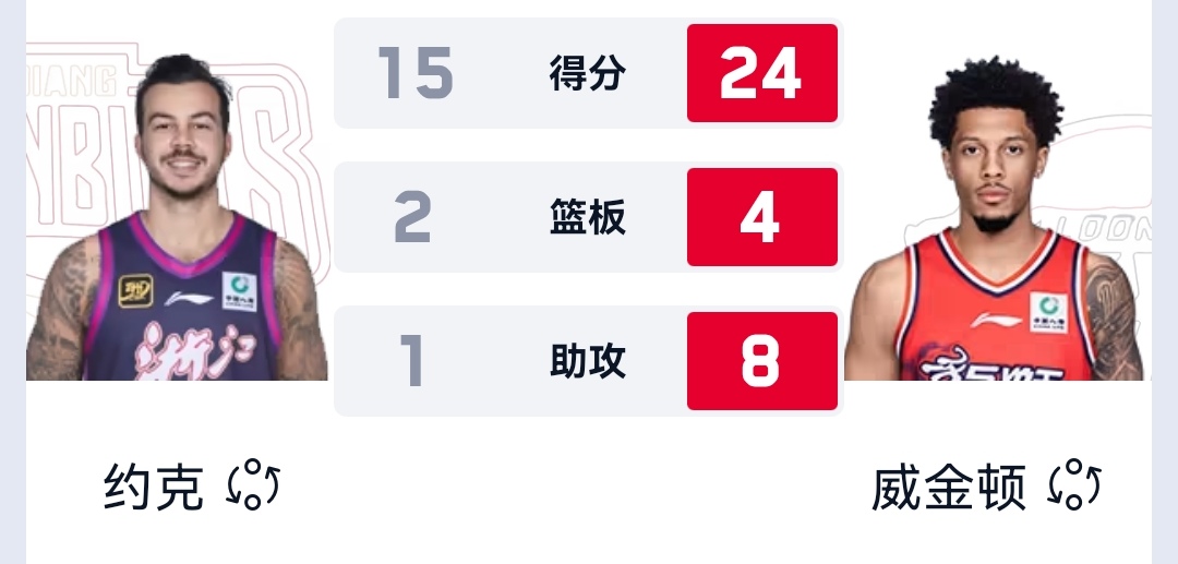 浙江稠州:兰道夫20分3篮板4助攻3抢断,约翰逊17分11篮板5助攻3抢断,约克15分2篮板1助攻2抢断,吴前11分1篮板5助攻,陆文博8分3篮板1助攻,李悦洲8分1篮板2助攻,琼斯3分4篮板2盖帽、刘泽一2分1篮板2助攻。