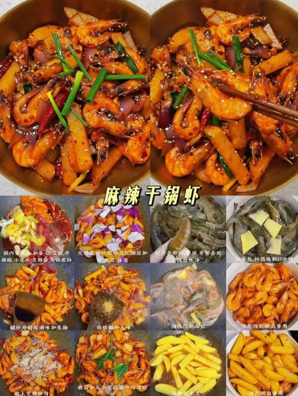大虾香辣入味,配菜也吸饱了汤汁。热腾腾的干锅往桌上一放,大家一边聊天一边吃,聚餐氛围一下就热闹起来了。