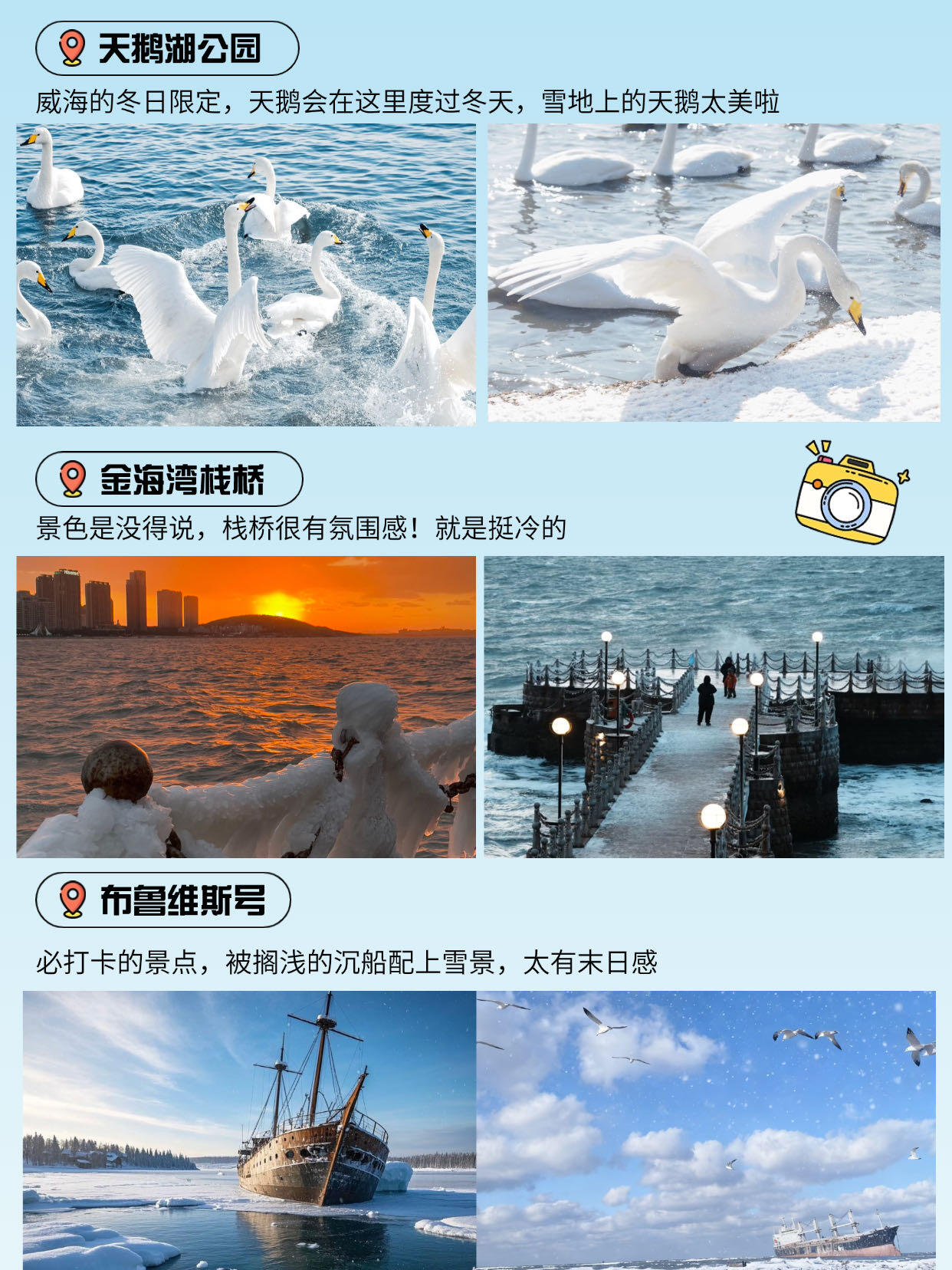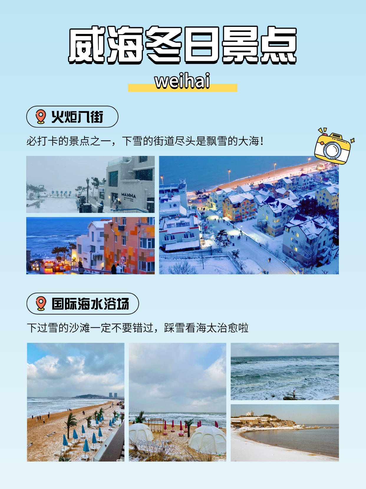 威海真的冷,去的时候只觉得衣服没带够!海边的风嗖嗖吹,景也是真的美,想看到威海的雪,提前查好天气,连着多天有雪都可以出发了,但抗寒的装备也要带好,经验之谈往下⬇️看: