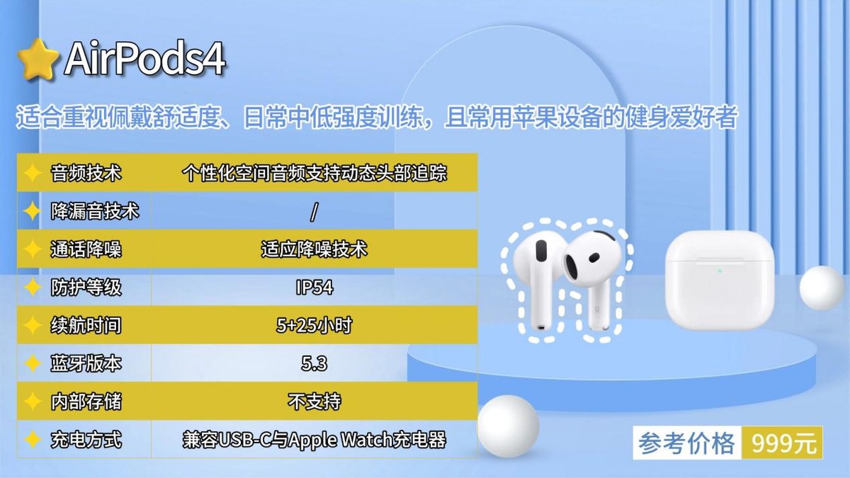 AirPods4延续苹果标志性舒适基因,以轻量化设计、旗舰级音质与苹果生态优势完成运动场景升级,成为兼顾日常与健身的优质音频伴侣,核心亮点与场景适配性十分突出。