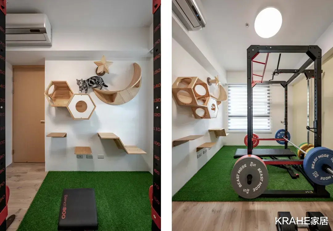 设计师将其中一间房间规划成了健身房,让房主在家就可以健身。