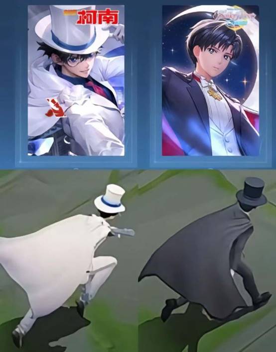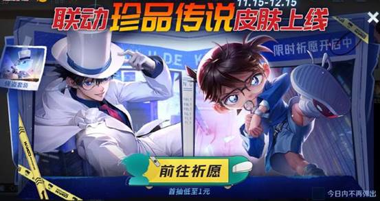 再来聊聊柯南联动,这次王者荣耀可是下了血本,直接拉来了两大男神——鲁班七号的江户川柯南皮肤和马可波罗的怪盗基德皮肤。