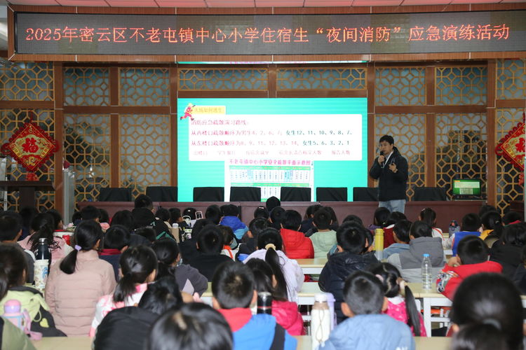 为严格落实区教委关于校园消防安全防控工作的统一部署,切实强化火灾防范措施,全面提升师生在突发火情下的应急处置与自救互救能力,筑牢校园安全防线,北京市密云区不老屯镇中心小学于2025年11月27日晚19时30分,组织全体住宿生成功开展了一场紧张有序的夜间消防应急疏散演练。