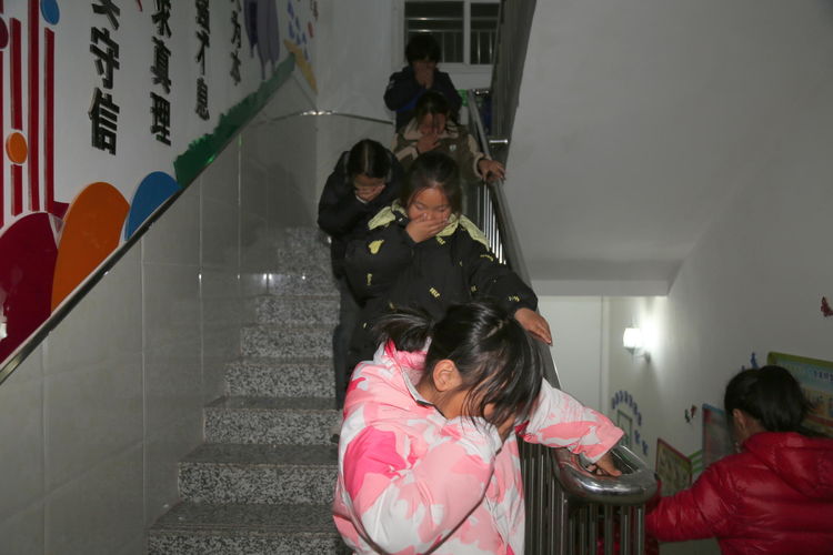 全体师生按照学校演练方案各就各位,严阵以待。随着演练信号的准时发出,学生迅速有序离开宿舍。参与演练的干部、教师在楼道、楼梯拐角处等位置沉着冷静地指挥学生按应急疏散路线快速有序撤离住宿楼,撤离到指定地点。学生到达疏散点学生餐厅后宿舍长迅速清点人数,并上报党政办主任。楼内教师排查楼道和各宿舍,确保不漏下一名学生。
