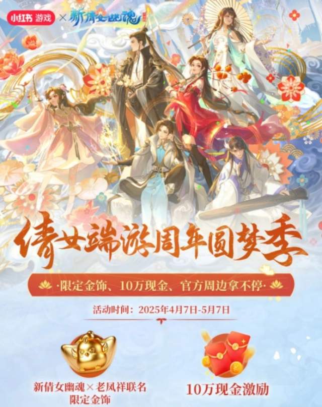 除了与上海欢乐谷的联动,还有小红书专属活动。参与小红书倩女端游周年圆梦活动,可获得积分抽官方专属周边,更可瓜分十万现金。报名成为专属作者,分享三界日常,还能获得官方的扶持和奖励,快来参与吧!