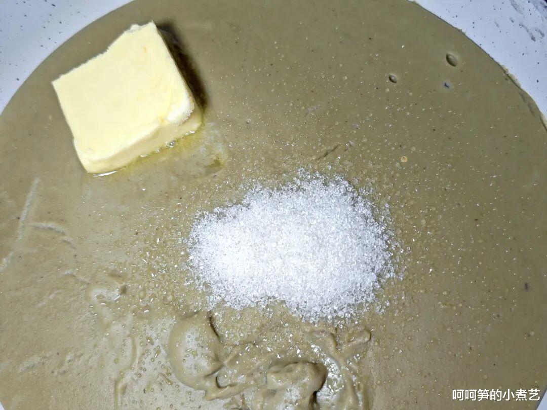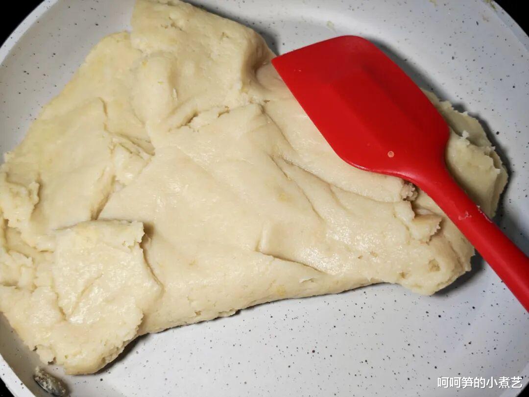 小火先把黄油和白糖炒化,和豆沙充分混合。