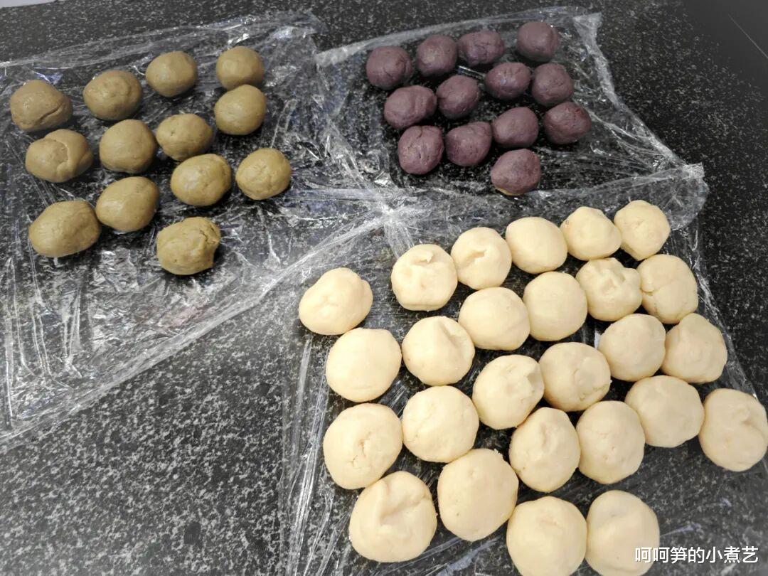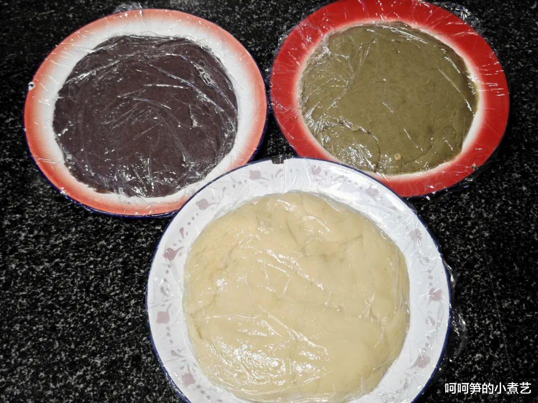 三款豆子都处理好,记得保鲜膜贴面包裹,暂时不包的可以放冰箱冷藏保存,第二天再做月饼。