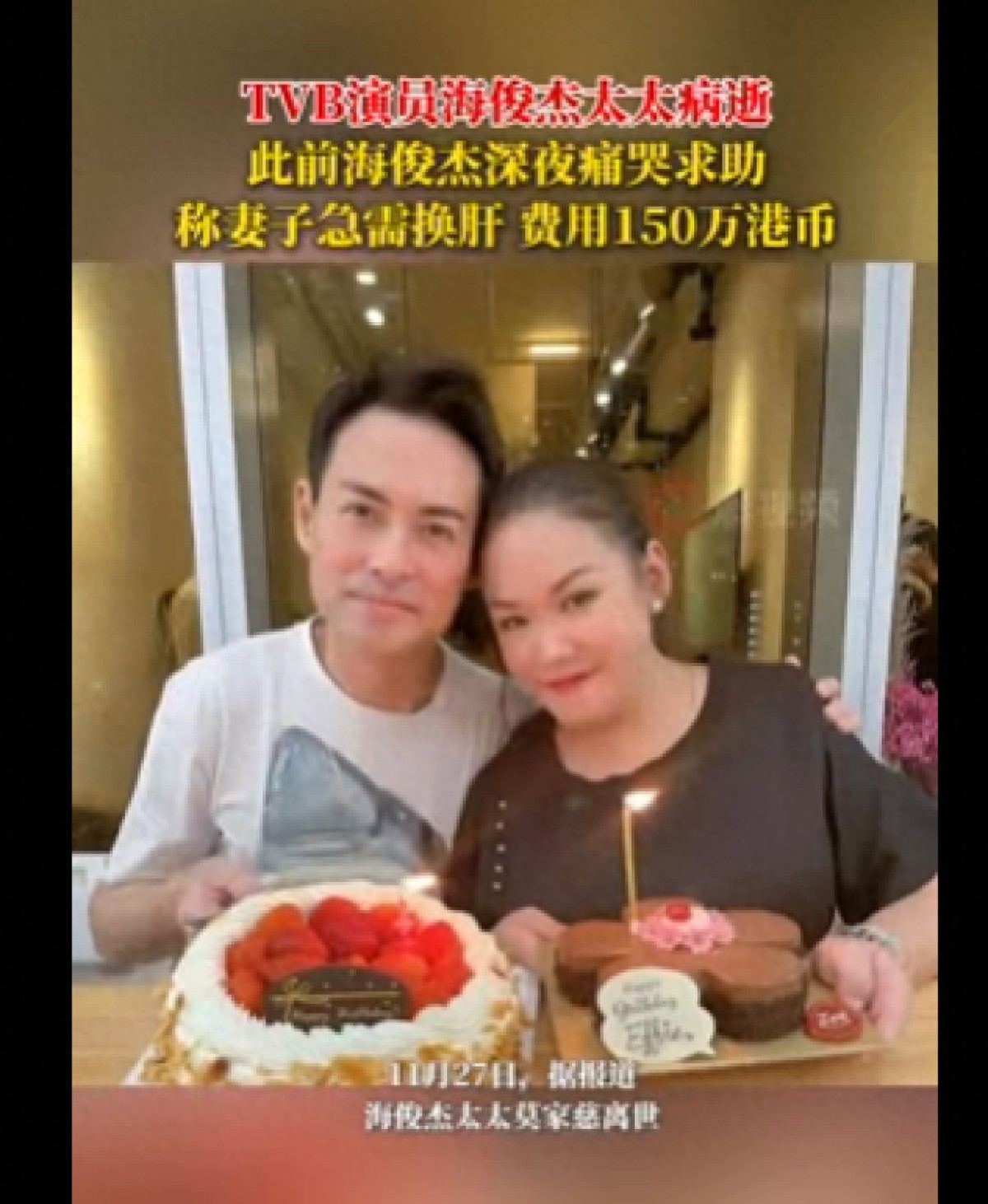 TVB演员海俊杰 早前透露其任职化妆师的老婆莫家慈患上急性肝衰竭,急需筹70万元做换肝手术,事件惹人关注,并一呼百应得到多位圈中人凑钱筹医药费。但,莫家慈已经病逝,其朋友们已陆续收到这个消息。