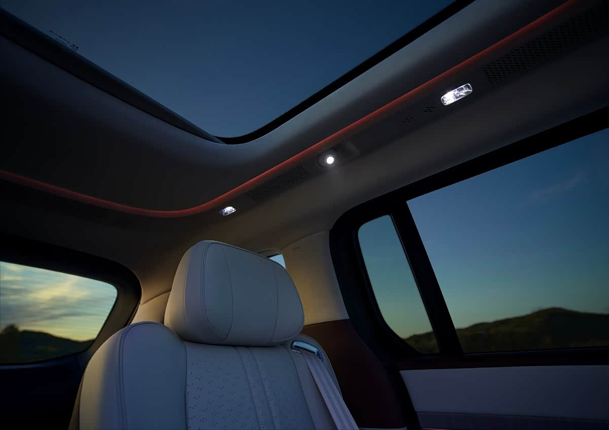 在配置层面,小鹏X9增程版继续搭载17.3英寸中控屏、10.25英寸液晶仪表以及高通骁龙8295P芯片。官图重点展示了由“穹顶星轨”氛围灯与AI航空阅读灯组成的灯光系统。针对第二排,新车升级了金属材质的音响网罩,并加入了阿尤斯真木装饰条。两个独立座椅具备零重力、按摩、通风和加热功能,高配车型还将提供21.4英寸后排娱乐屏。值得注意的是,它的第三排座椅支持靠背调节,并能进行4/6比例的翻转收纳,这为后备厢空间带来了更灵活的使用方式。