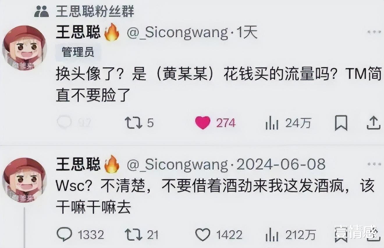 一次是让黄一鸣不要借着酒劲来自己这发疯,该干嘛干嘛去,一次是骂黄一鸣花钱买流量不要脸。