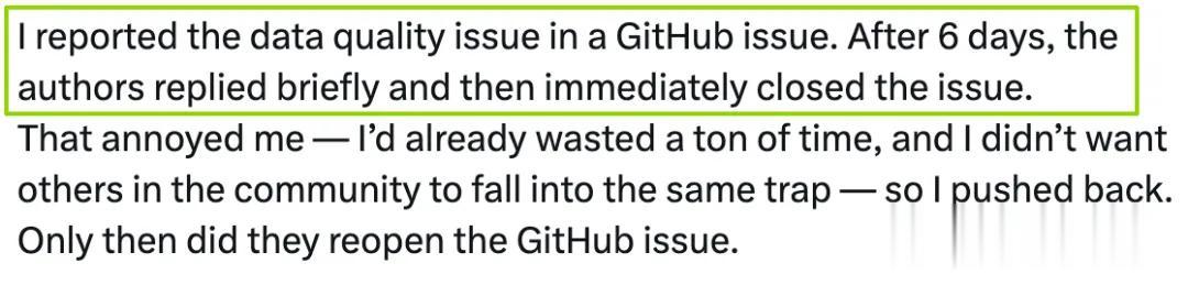 自己去反馈问题,对方简单回了两句就把issue关了;直到自己留下公开评论,对方才撤稿下架代码了。