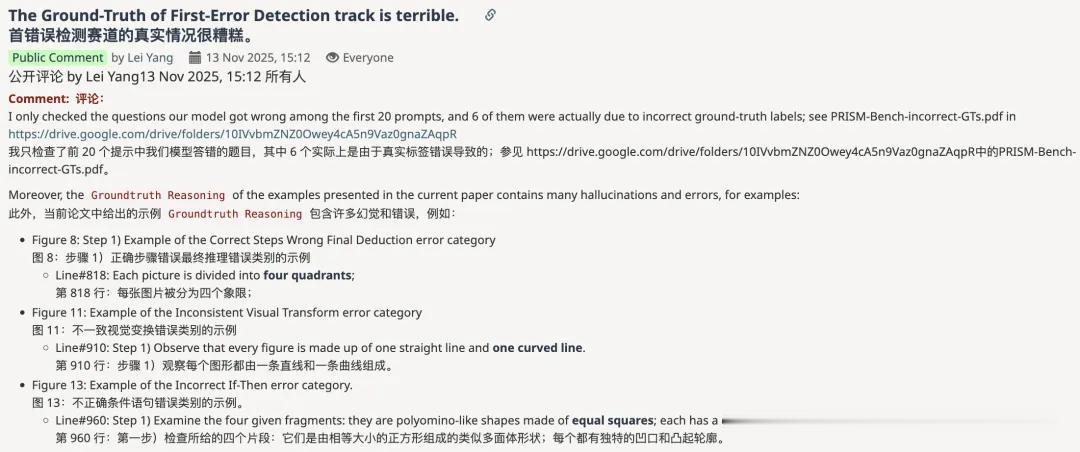 ICLR review公布后,Lei Yang看了看该论文的5条reviews,居然没有任何一个审稿人发现GT质量问题,也没人发现论文中的例子存在幻觉和错误。