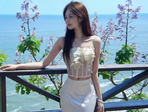 她穿着白色衬衫,牛仔裙,脚上踩着帆布鞋,简单的化了个妆,显得干净又青春。