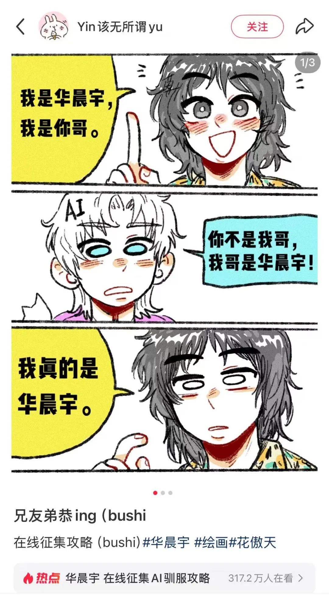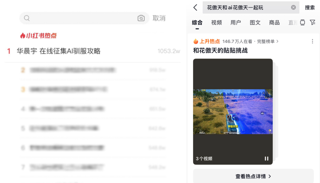很快,#华晨宇 在线征集AI驯服攻略#、#和花傲天的贴贴挑战#的话题相继登上平台热点,成功吸引超百万人在线观看。“花傲天”,一个自带活人感的养成系AI明星队友,也因此成为了很多人新的游戏搭子。