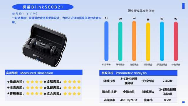 总体来看,枫笛Blink500B2+收音专业、降噪强效、操作便捷,是双人创作、采访拍摄的优选,能满足专业创作需求,性价比突出。