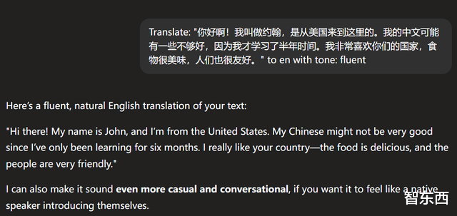 上线后,智东西第一时间将ChatGPT Translate与谷歌翻译等传统翻译工具进行了对比实测。