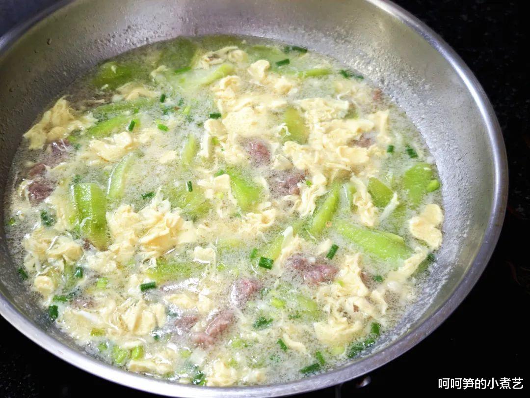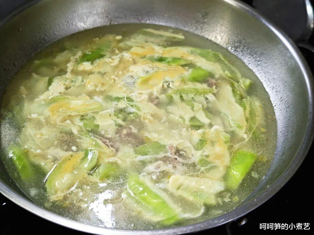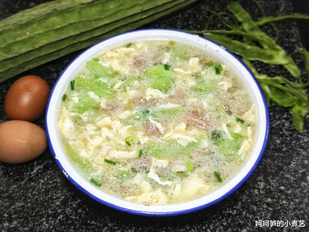 丝瓜脆嫩,鸡蛋爽滑,肉片鲜嫩,夏天喝清爽又解暑。