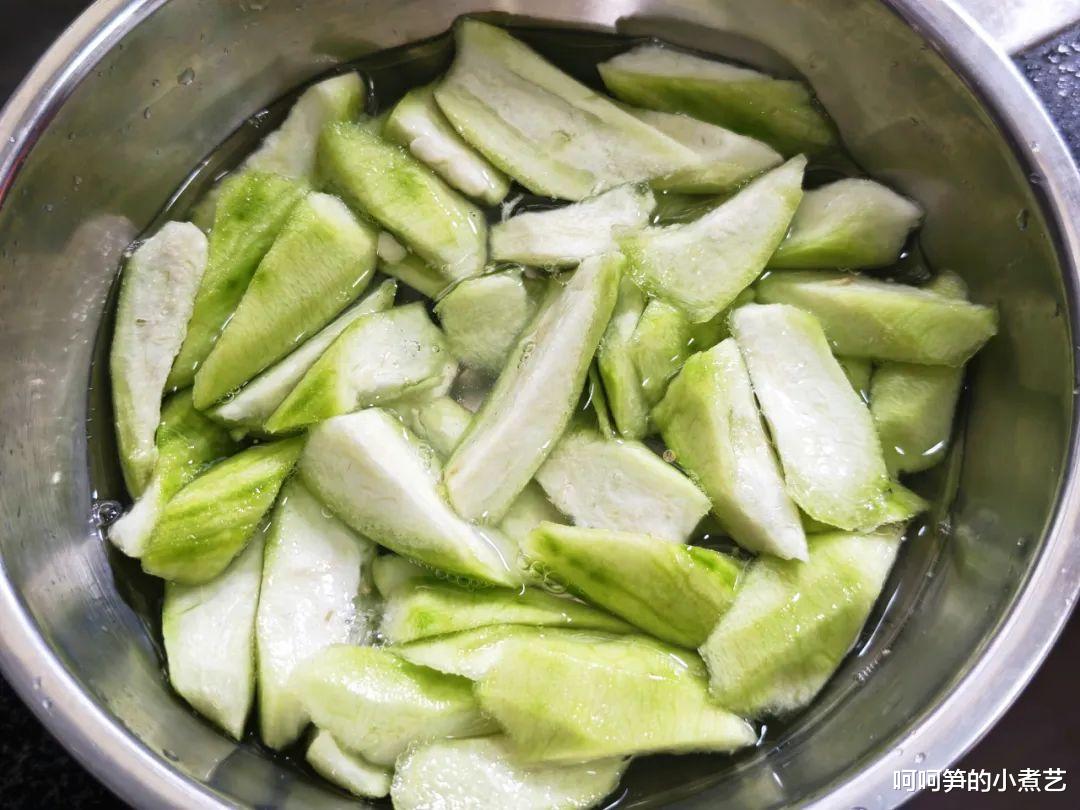 这样一是可以很好的防止丝瓜与空气接触氧化变黑,煮好以后也不发黑。二是浸泡后可以破坏丝瓜中的海绵结构,炒制过程中就不会过分吸油,吃起来不感到油腻。
