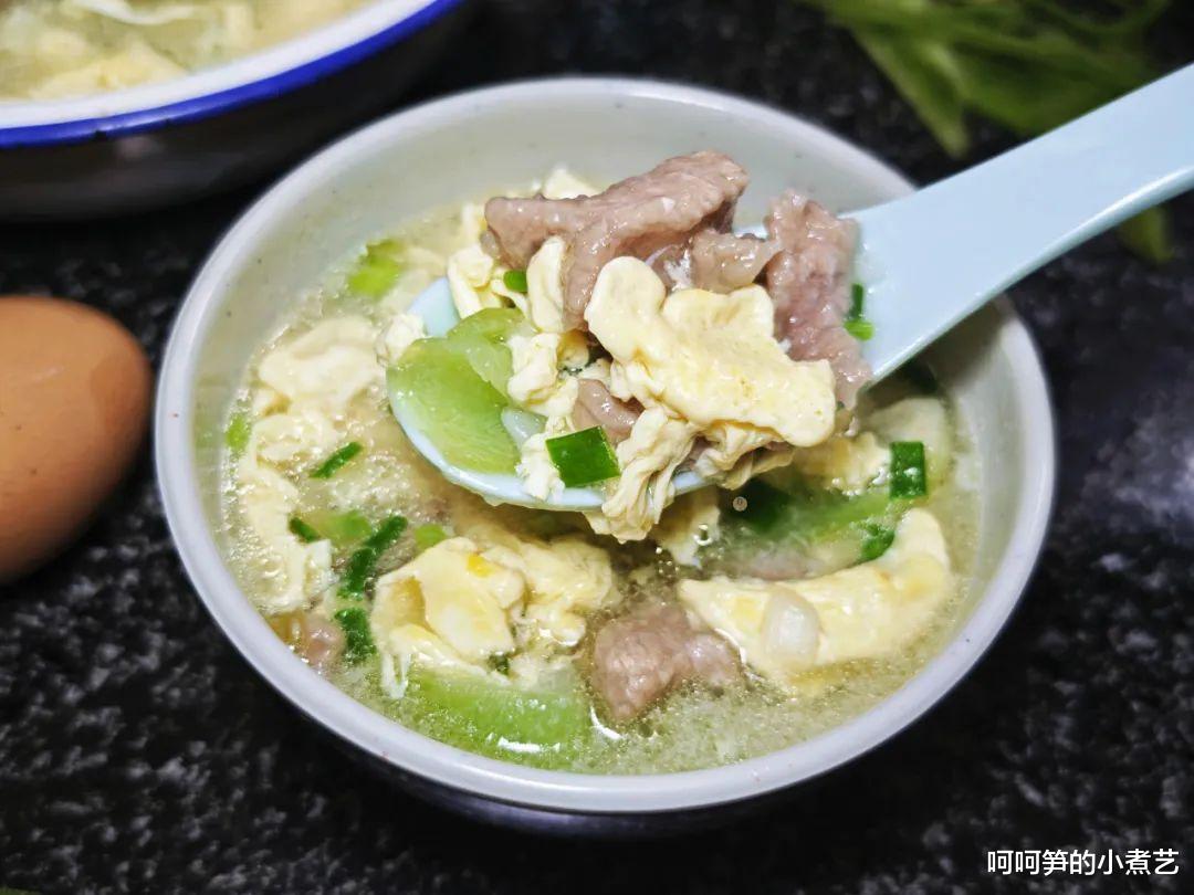 丝瓜肉片蛋花汤,做法简单,大人小孩都爱喝。
