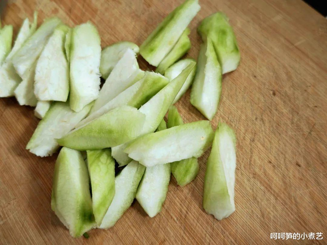 步骤八角丝瓜吃起来口感和北方的圆丝瓜不同,肉质紧实,水分含量也更大,不仅清甜,还有一份爽脆。