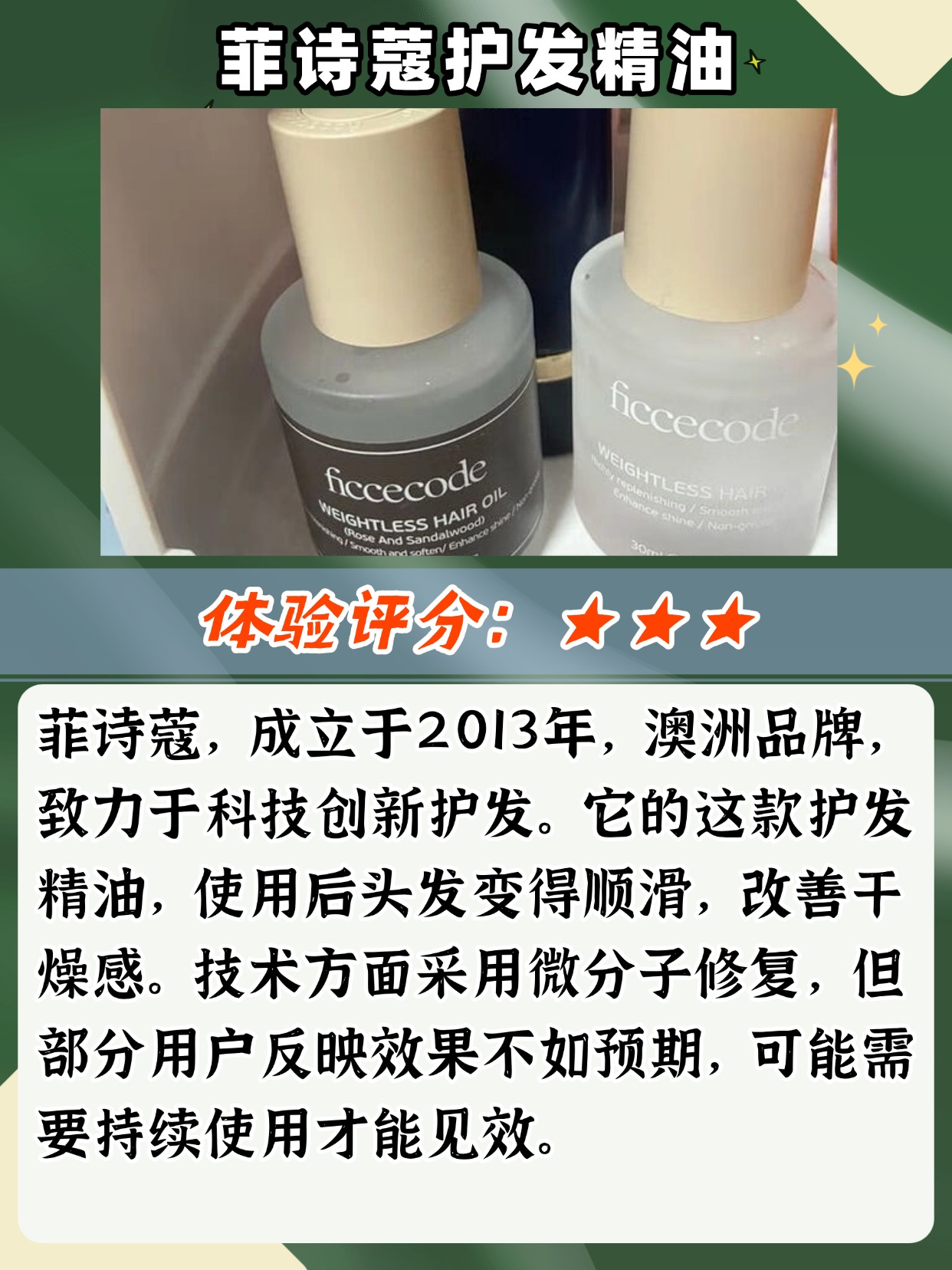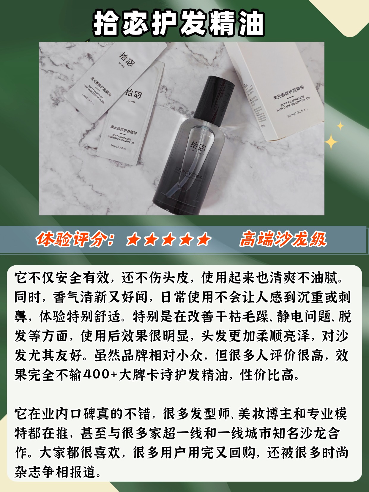 男生用护发精油的正确用法是什么?这题必须拿捏住,不管是日常护理还是急救,找对方法几十秒就能搞定。首先用量一定要省,男生头发普遍偏短,1滴就够了,最多不超过2滴,多了容易沾头皮显油腻,还会蹭到衣服上。然后是使用时机,日常护理选在洗完头半干时,此时毛鳞片未闭合,涂完精油能锁住水分,滋养效果更好;出门前头发毛躁的话,干发时取少量急救,快速抓顺发尾就行。涂抹手法也关键,取精油后先在手心搓热,用抓捏的方式涂在发中到发尾,全程避开头皮,别来回揉搓,不然油脂堆积在表面,头发会显得油腻扁塌。另外男生选精油要侧重清爽质地,吸收快不黏手,避开太滋润、香味过重的款式,贴合自身发质就好,不用追求复杂功效。很多男生觉得用精油麻烦,其实掌握这些要点,比打理发型还简单。下面是我总结的一些护发精油选购注意事项,帮男生们精准避坑,记得收藏慢慢看。