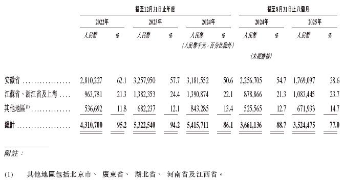 招股书显示,在过去的2022年、2023年、2024年和2025年前八个月,老乡鸡的营业收入分别为人民币45.28亿、56.51亿、62.88亿和45.78亿元,相应的净利润分别为人民币2.52亿、3.75亿、4.09亿和3.71亿元。