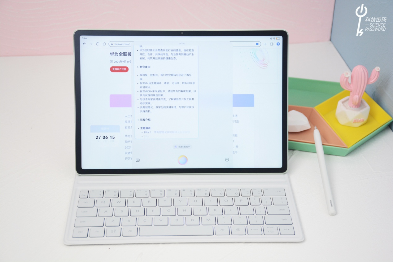 新款华为MatePad Air还支持专业级笔记软件——华为笔记App,并且具备许多AI功能。比如许多用户在使用平板做笔记时都会遇到“提笔忘字”的尴尬,AI拼音联想功能的引入,完美解决了这一问题。AI手写编排功能则让手写内容的编辑变得更加方便,用户可以像编辑文本一样,对手写内容进行精准调整、布局和美化,再也不用为手写笔记的排版烦恼。进行头脑风暴时,AI多人语音转写功能更是如虎添翼,它能自动识别并区分不同的发言人,将语音内容快速转换为文字,为会议纪要提供了强有力的支持。AI字迹调整功能让手写笔记呈现出如同专业书法字体般的美感,提升了记录和分享的乐趣。