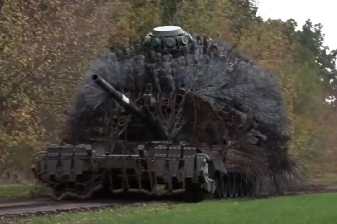 而这几年的俄乌战场,俄罗斯坦克先安上了防护栅栏、铁链,后来焊上铁壳甚至装上木头,最近又不知道在上面堆了些什么,像移动的大花盆。