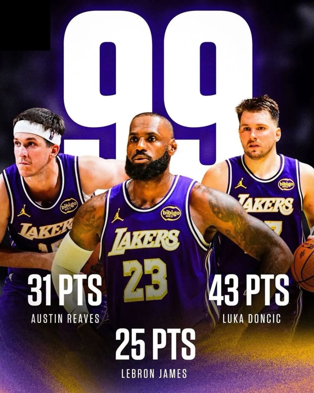 其中对阵快船的同城德比,詹姆斯还拿到了25分6篮板6助攻,三人同场轰下99分,现役有多少三人组能有这种恐怖火力?