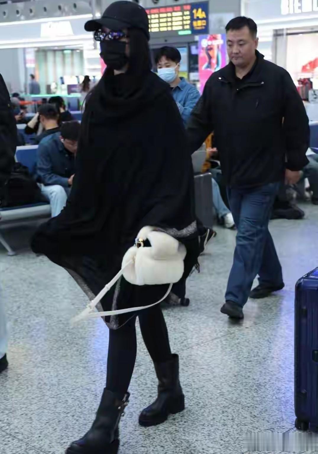 没有保镖簇拥,没有助理前呼后拥,她背着一个简单的帆布包,穿着一身全黑look:黑色上衣配黑色长裤,脚踩一双小白鞋,素面朝天的脸上架着一副黑框眼镜。这般简约到近乎“素人”的打扮,却愣是被她穿出了不一样的味道。有路人随手拍下的生图里,她身姿挺拔如松,即便在熙攘的人群中,也像自带一层柔光滤镜,难怪有人感叹:“刘亦菲这气质,裹块麻袋都好看吧?”